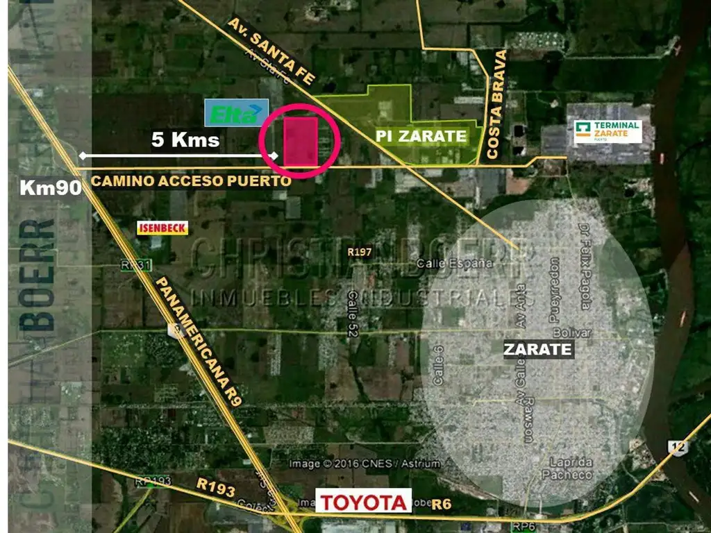 El complejo logístico está muy bien ubicado sobre Camino de la Costa Brava / Camino de Acceso al Puerto,que es la ruta por la cual se accede al parque industrial y al puerto de Zárate. Son 3,3kms desde Ruta Nacional 9, Panamericana, Ramal Escobar.